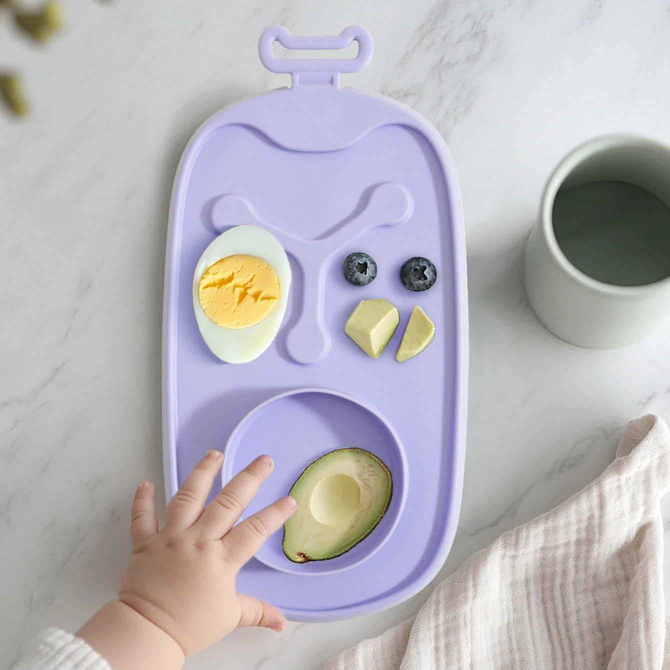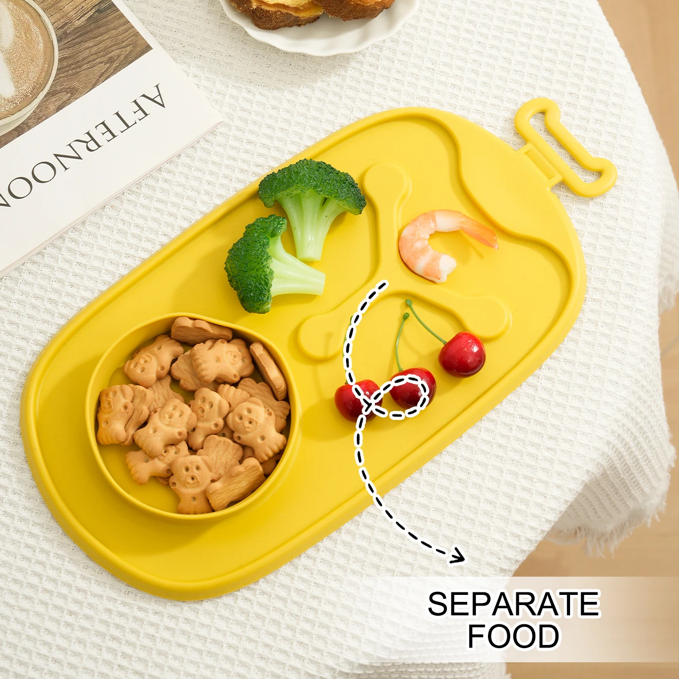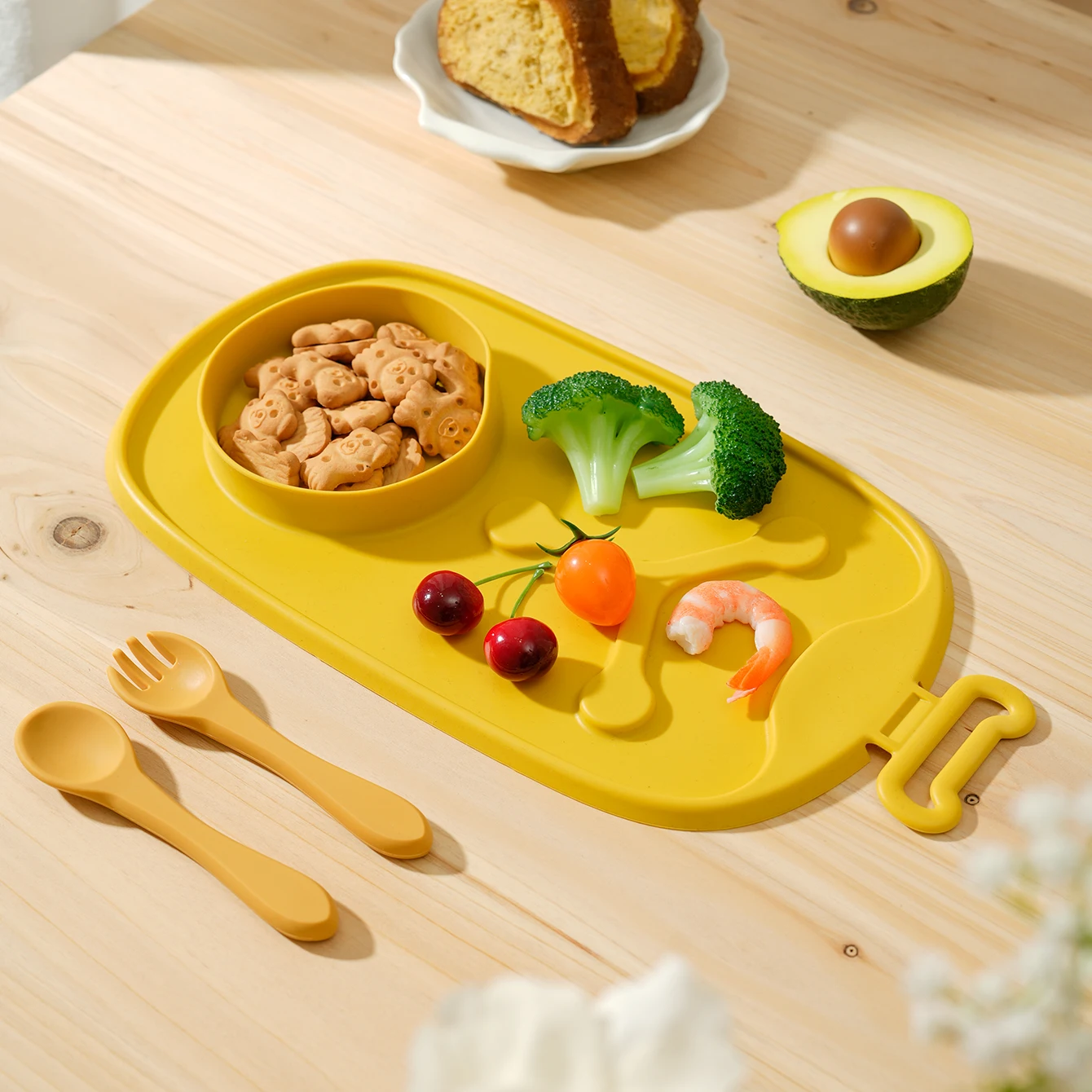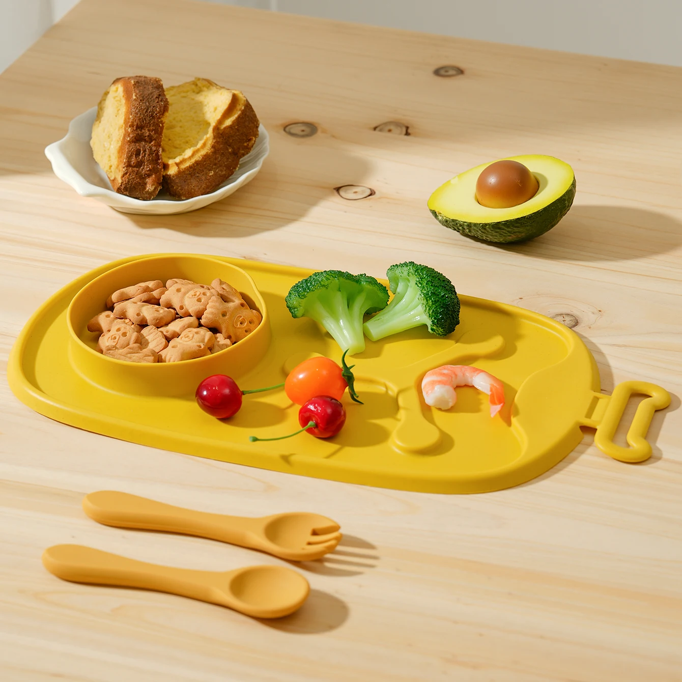 1 pçs novo design tigela de silicone do bebê anti-deslizamento pratos de alimentação placa talheres para treinamento e armazenamento portátil presente do chuveiro do bebê