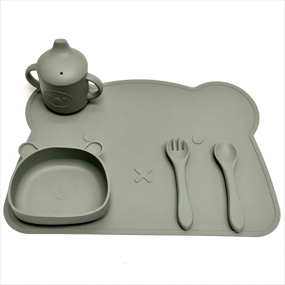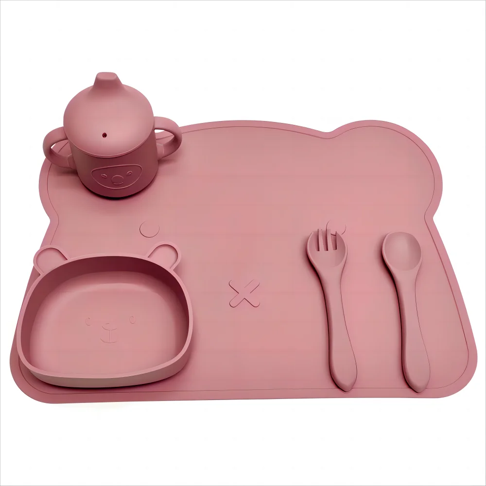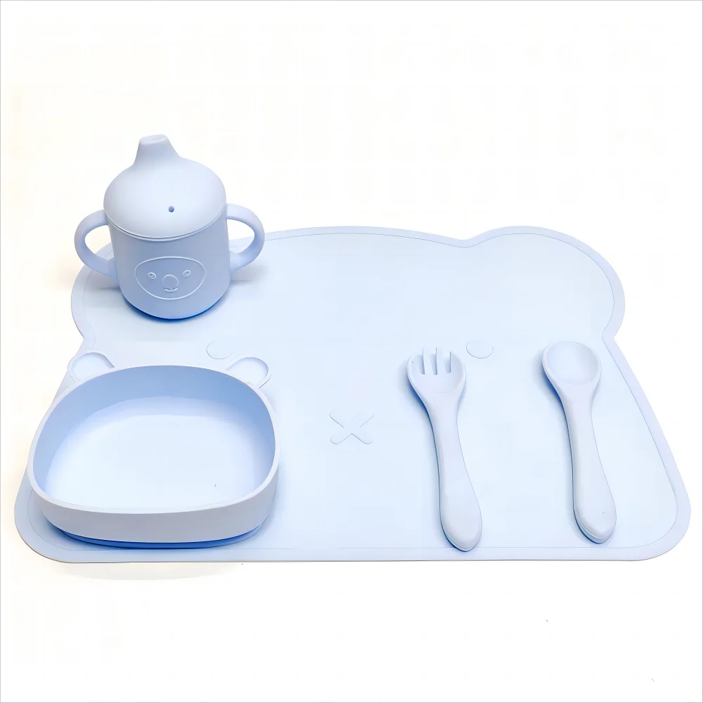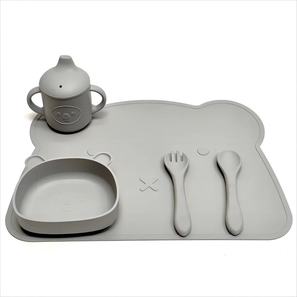 Conjunto de utensílios de mesa infantil silicone bebê complementar tigela garfo colher bib cinco peças bebê um compartimento prato de jantar