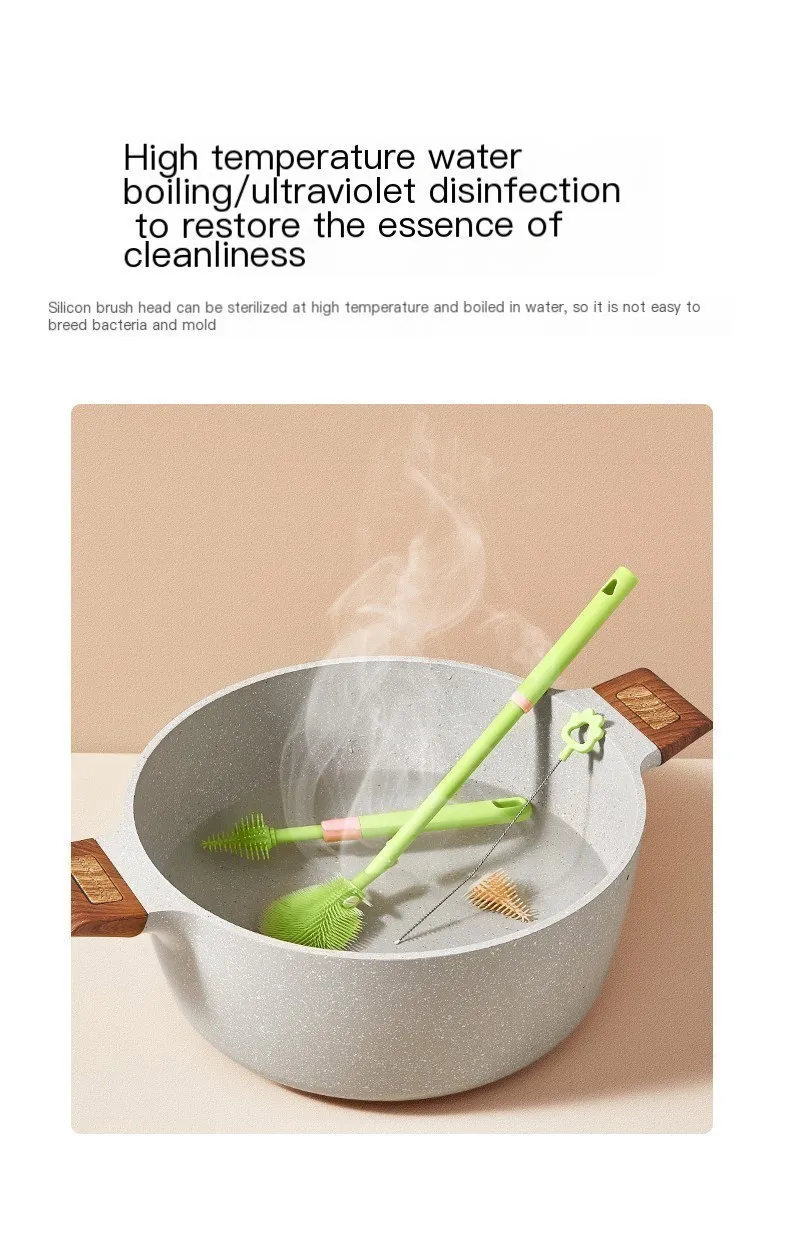 Estas escovas foram desenvolvidas para limpar os locais de difícil acesso de copos, garrafas, mamadeiras e canudos.