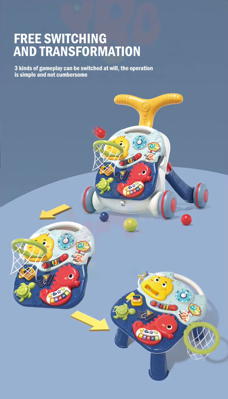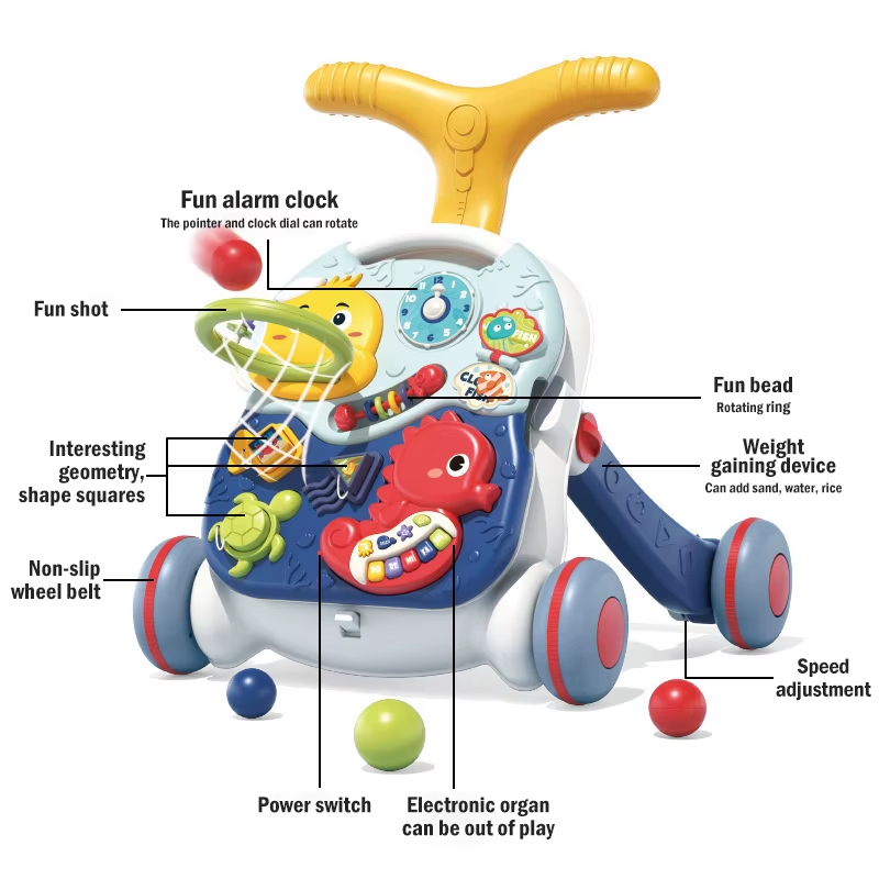 3.Multifuncional: Este brinquedo de caminhada para bebês pode exercitar a coordenação olho-mão e o senso de ritmo do bebê, ao mesmo tempo que cultiva sua capacidade cognitiva.