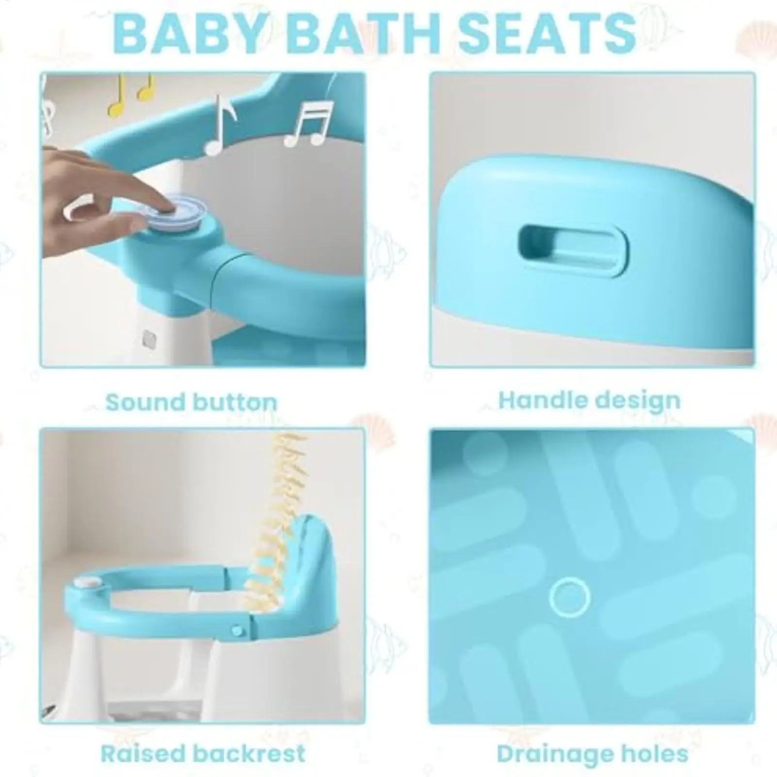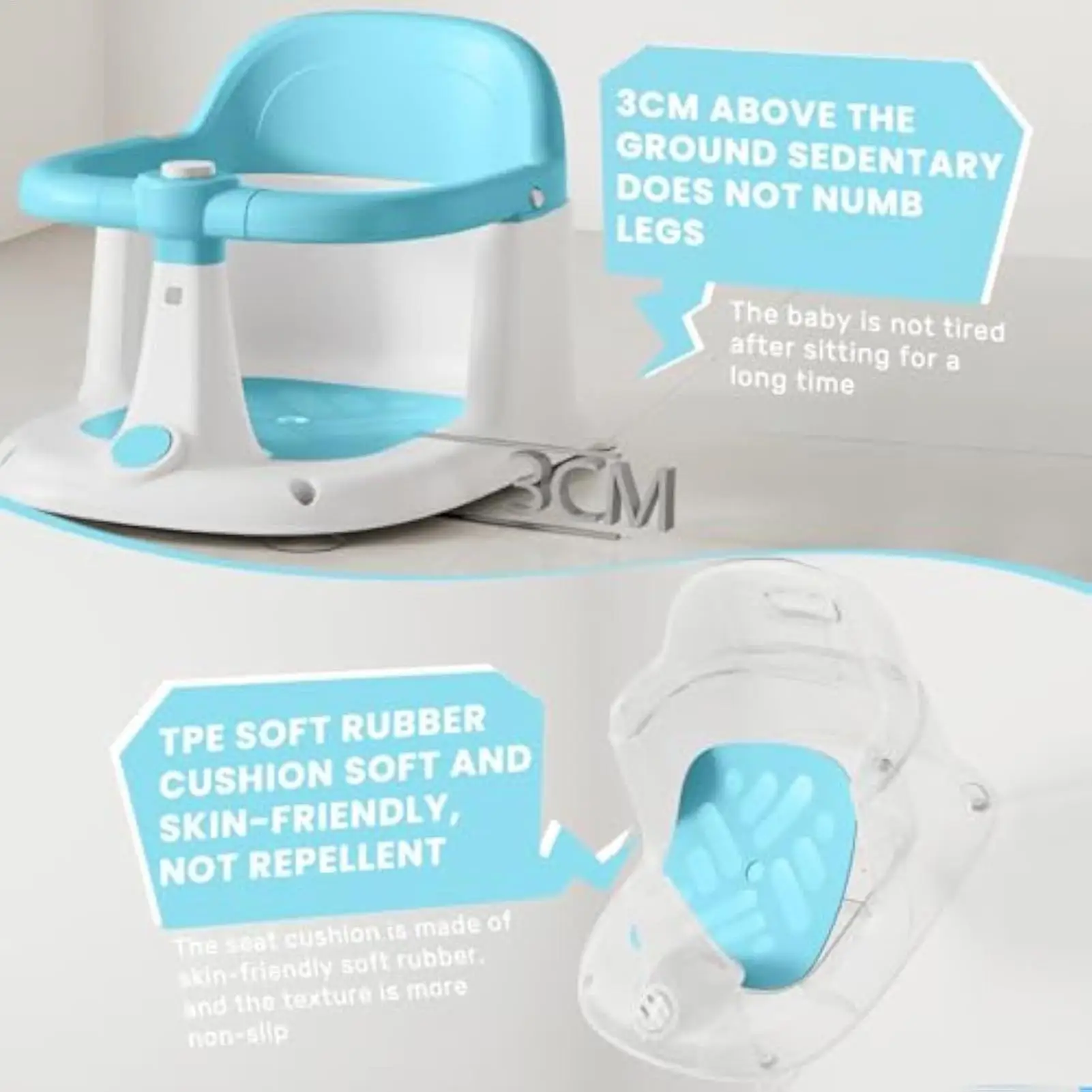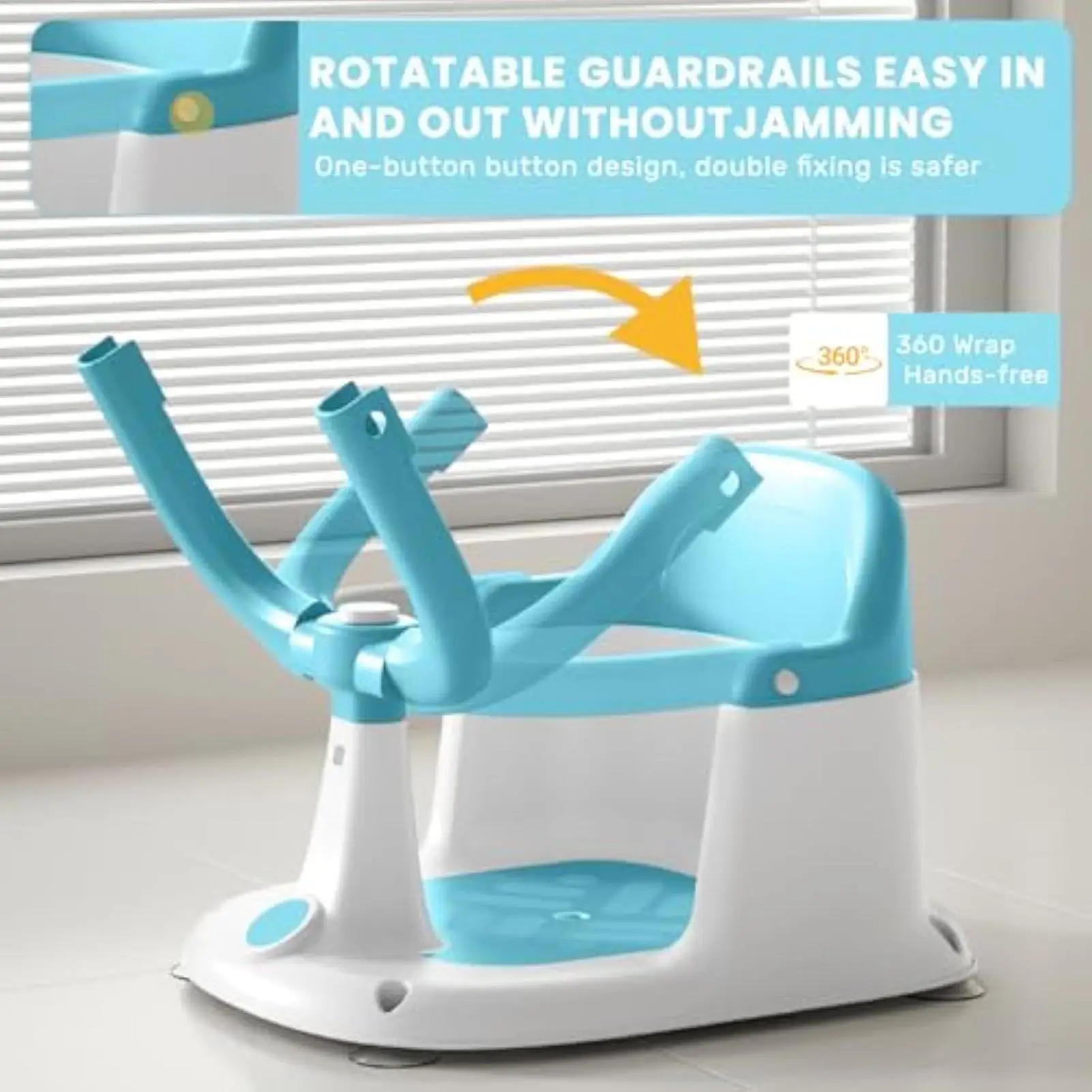 Características/Especificações:1. Banho de bebê sem esforço: Projetado para melhorar a eficiência do banho, este assento de banho inclui uma estrutura surround estável e ajuste de vários ângulos, complementado por uma função de rotação de 360 graus para melhorar a experiência do usuário durante a hora do banho2. Prático para limpar: o assento de banho para bebês foi projetado com orifícios de drenagem densos e recursos de secagem rápida, garantindo fácil manutenção e superfícies de assento de banho para bebês sempre limpas 3. Leve e portátil: com atenção à fácil portabilidade, o assento de banho para bebês incorpora um design de alça ergonômica e alça de transporte integrada, garantindo distribuição uniforme de peso e suporte confiável em vários cenários de uso para maior comodidade 4. Suporte de conforto aprimorado: o ajuste traseiro e quadril do bebê com posições deitada ajustáveis garante liberação de desconforto ao sentar, enquanto a zona de suporte macia e acolchoada e o design ergonômico curvo proporcionam conforto ideal durante a hora do banho5. Adesão segura da banheira: A base de ventosa alargada e o material texturizado trabalham juntos para evitar escorregões e tombamento, proporcionando tranquilidade durante a hora do banho. Projetado com princípios ergonômicos, este assento de banho para bebê garante suporte ideal para crianças de 1 a 3 anos de idade. A base antiderrapante aumenta a segurança na hora do banho, tornando-a adequada para uso em aventuras ao ar livre ou viagens à praia. Especificação:Material: pp Tamanho do produto:Comprimento: cerca de 40cm/15,75 polegadasLargura: cerca de 31cm/12,2 polegadasAltura: cerca de 27,5cm/10,83 polegadasIdade aplicável: 1-3 anosDescrição360 ° guarda-corpo giratório: controle de um botão, o guarda-corpo gira livremente, o que é conveniente para o bebê entrar e sair, ao mesmo tempo que fornece proteção de segurança completa. Encosto elevado: Fornece suporte confortável para o encosto do bebê para evitar escorregões e aumentar a sensação de segurança. Orifício de drenagem: O fundo é projetado com um orifício de drenagem para garantir que a água seja rapidamente drenada e mantida limpa e higiênica. Design da alça: A parte superior é equipada com uma alça para fácil movimentação e transporte, adequada para uso doméstico e em viagens. Botão de som: Dispositivo de som integrado, que emite sons interessantes para atrair a atenção do bebê e tornar a hora do banho mais agradável. Lista de produtos:1 * Assento de banho para bebêNotas: Devido às diferentes configurações de iluminação e tela, a cor do produto pode ser ligeiramente diferente da imagem. Devido à diferença na medição manual, permita uma diferença de tamanho de 1-3cm.