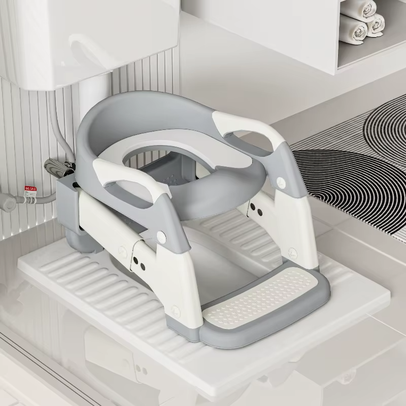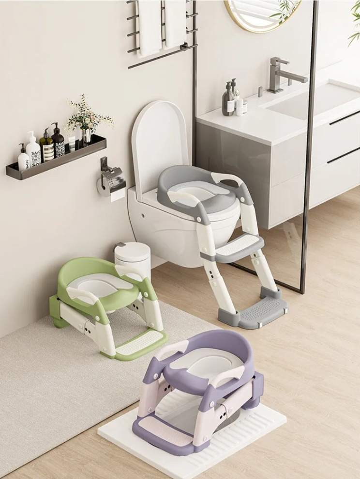 Escada de Degraus Inclusa: A escada para vaso sanitário é ajustável, permitindo que seu filho alcance facilmente o assento.