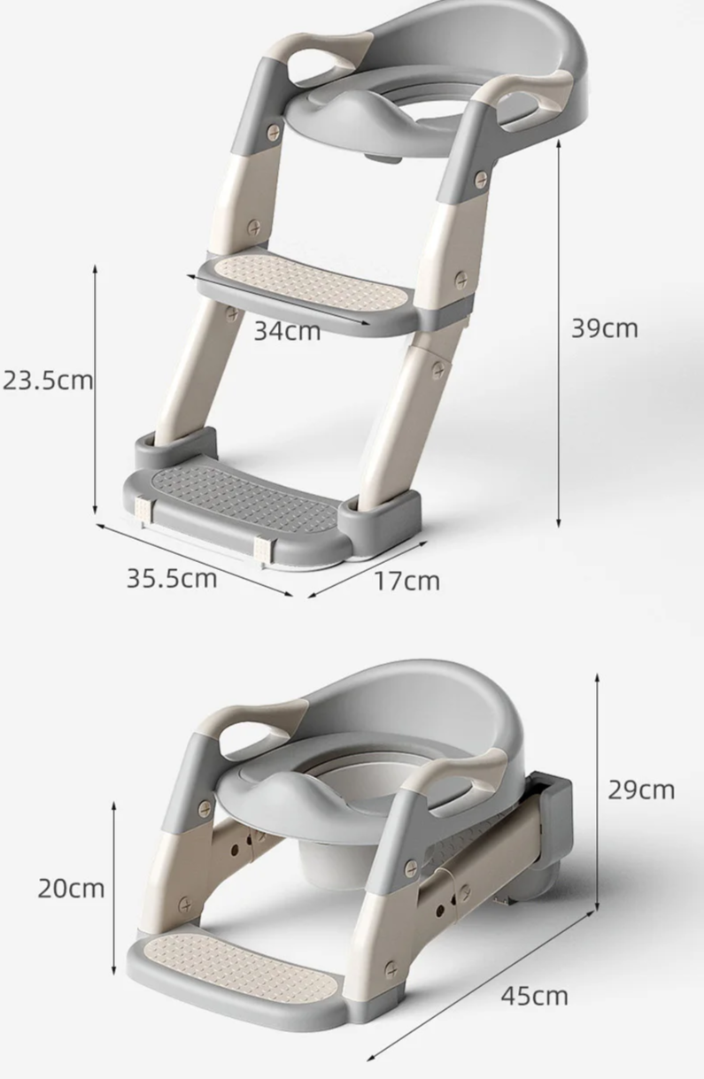 Estabilidade com Escada: O vaso bebe possui escada integrada para segurança e praticidade durante o treinamento de banheiro.
