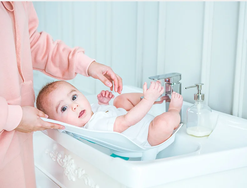 • Coloque o bebê no centro por uma postura supina para lavar. (Você não deve deixar o bebê durante o processo)