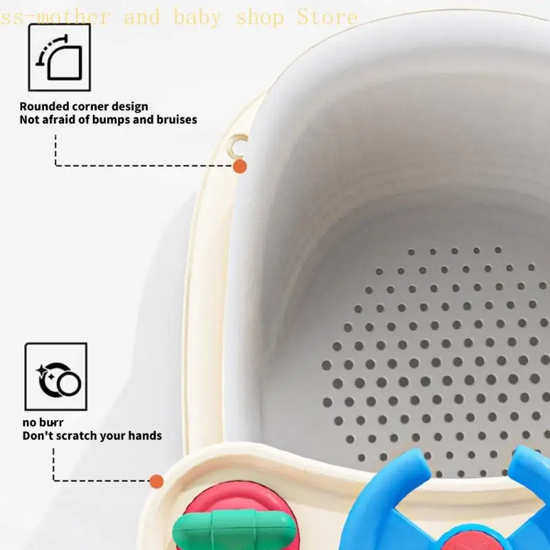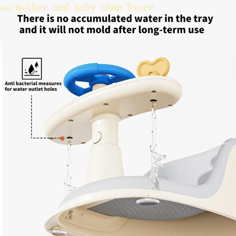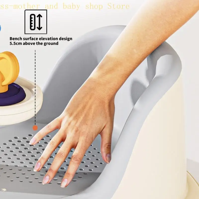 Fornece suporte de banho seguro em condições de banheiro escorregadio, com superfícies de assento texturizadas que evitam escorregões acidentais durante as brincadeiras aquáticas.
