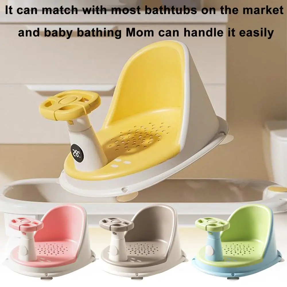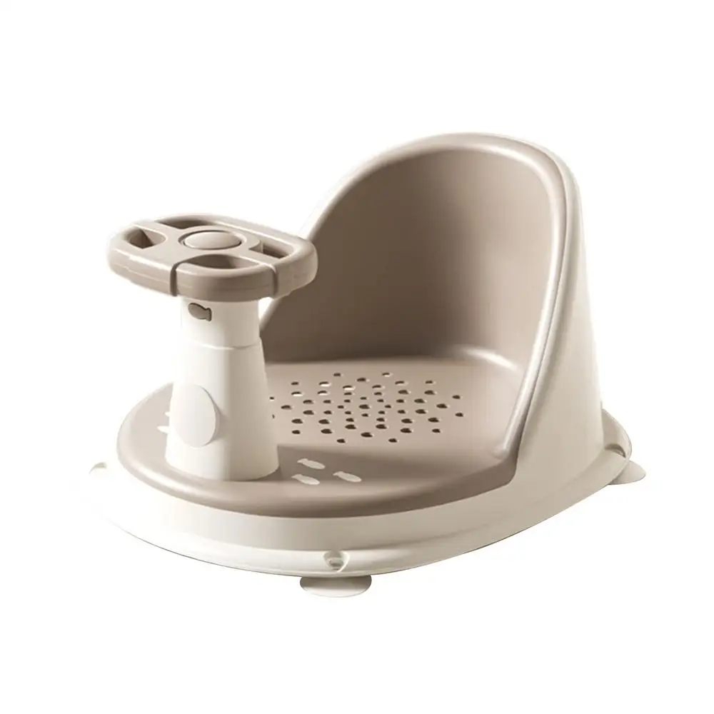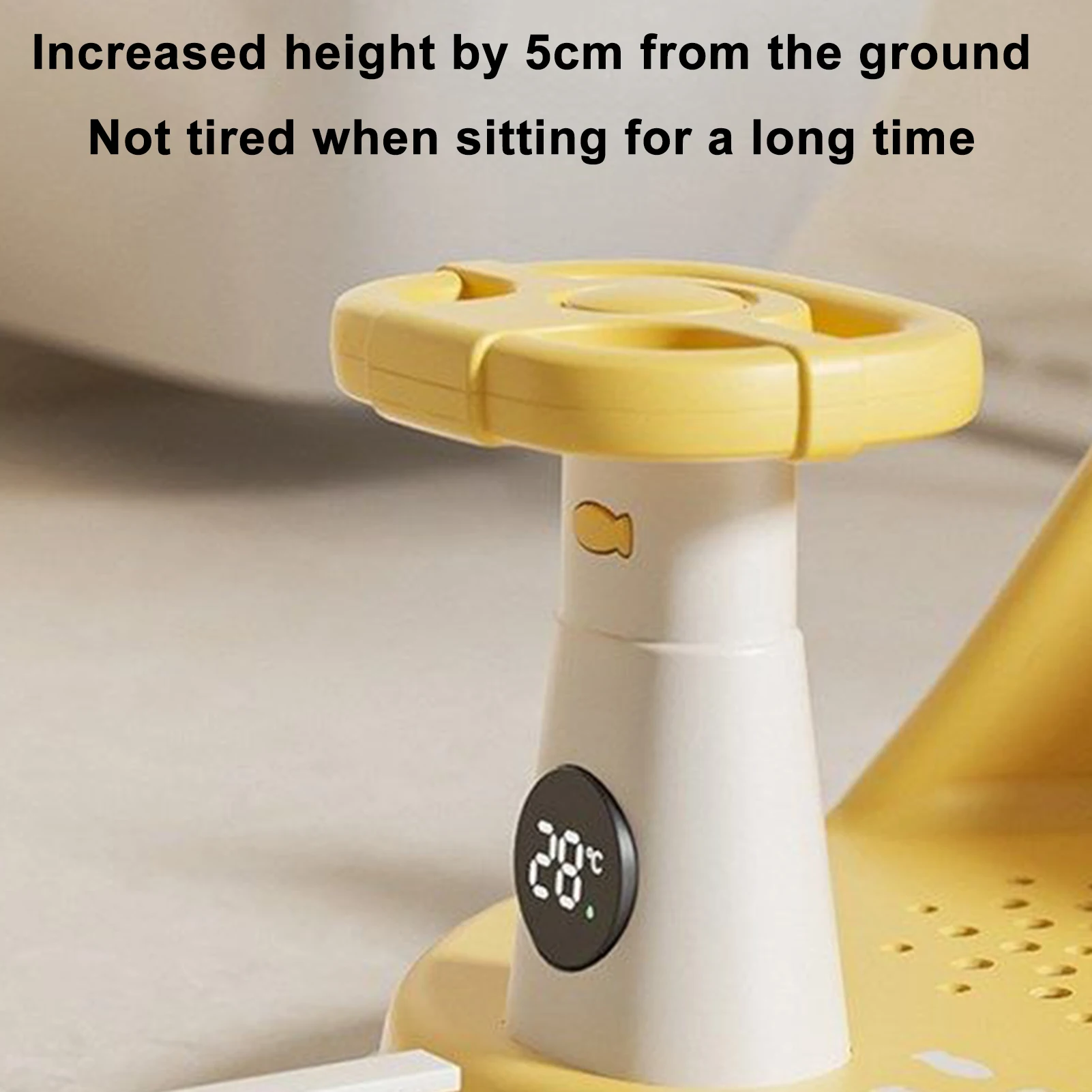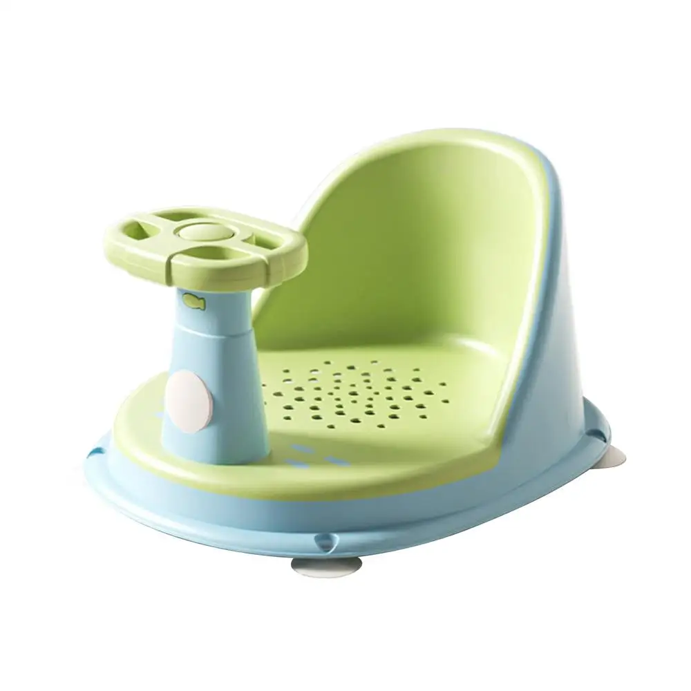 2.Hora do banho focada na diversão: esta cadeira de banho para bebês possui um pequeno volante projetado para desviar a atenção por meio de diversão interativa, permitindo que os bebês apertem e emitam sons, promovendo a brincadeira e a interação, ao mesmo tempo que torna a hora do banho agradável e envolvente para o seu filho