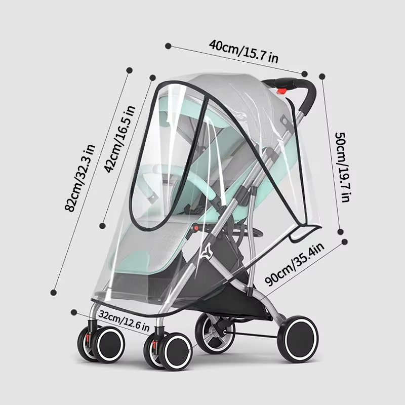 1.Material:A capa de chuva do carrinho é feita de PVC.Possui alta transparência e brilho, durabilidade e resistência ao rasgo.