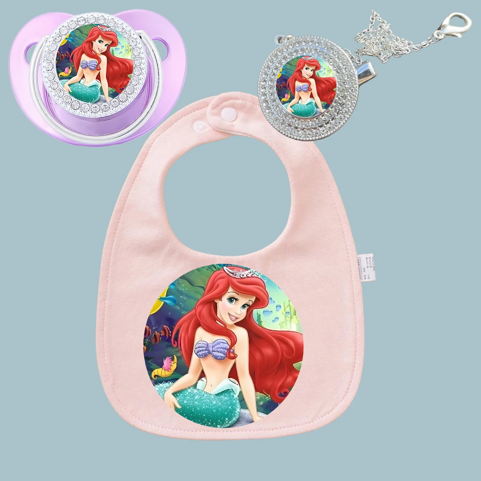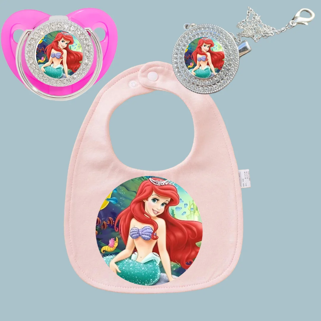 Chupeta de desmame bling recém-projetada, babador de bebê com estampa de princesa, chiclete oral e corrente de chupeta para bebê recém-nascido, presente de banho para bebê
