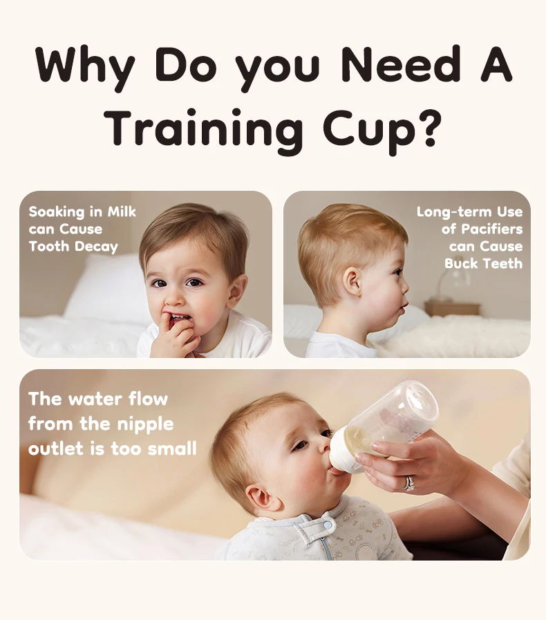 Disponível em capacidades de 240ml e 300ml, esta mamadeira de treinamento atende às necessidades crescentes do seu bebê, desde faixa de idade de 0 a 6m.