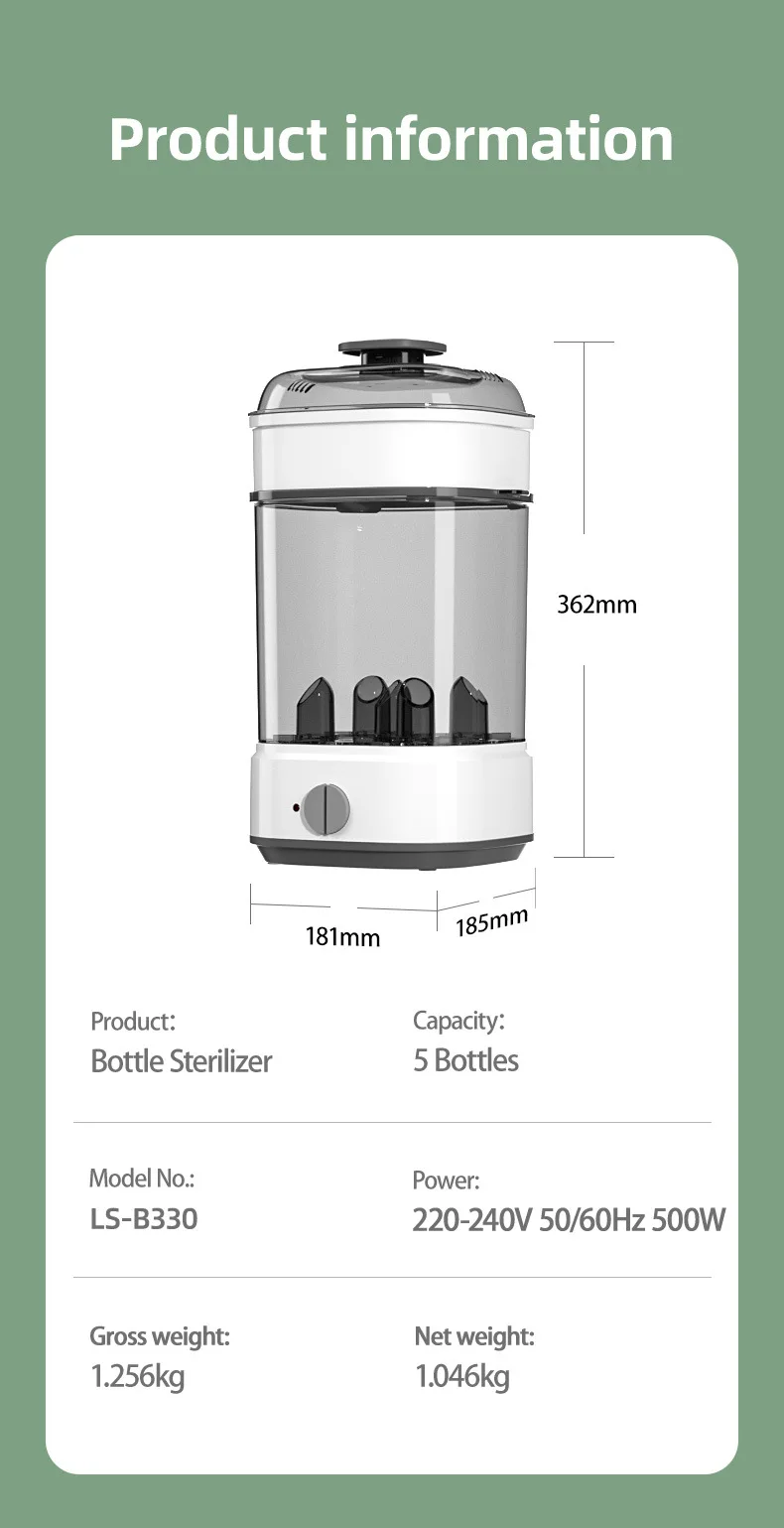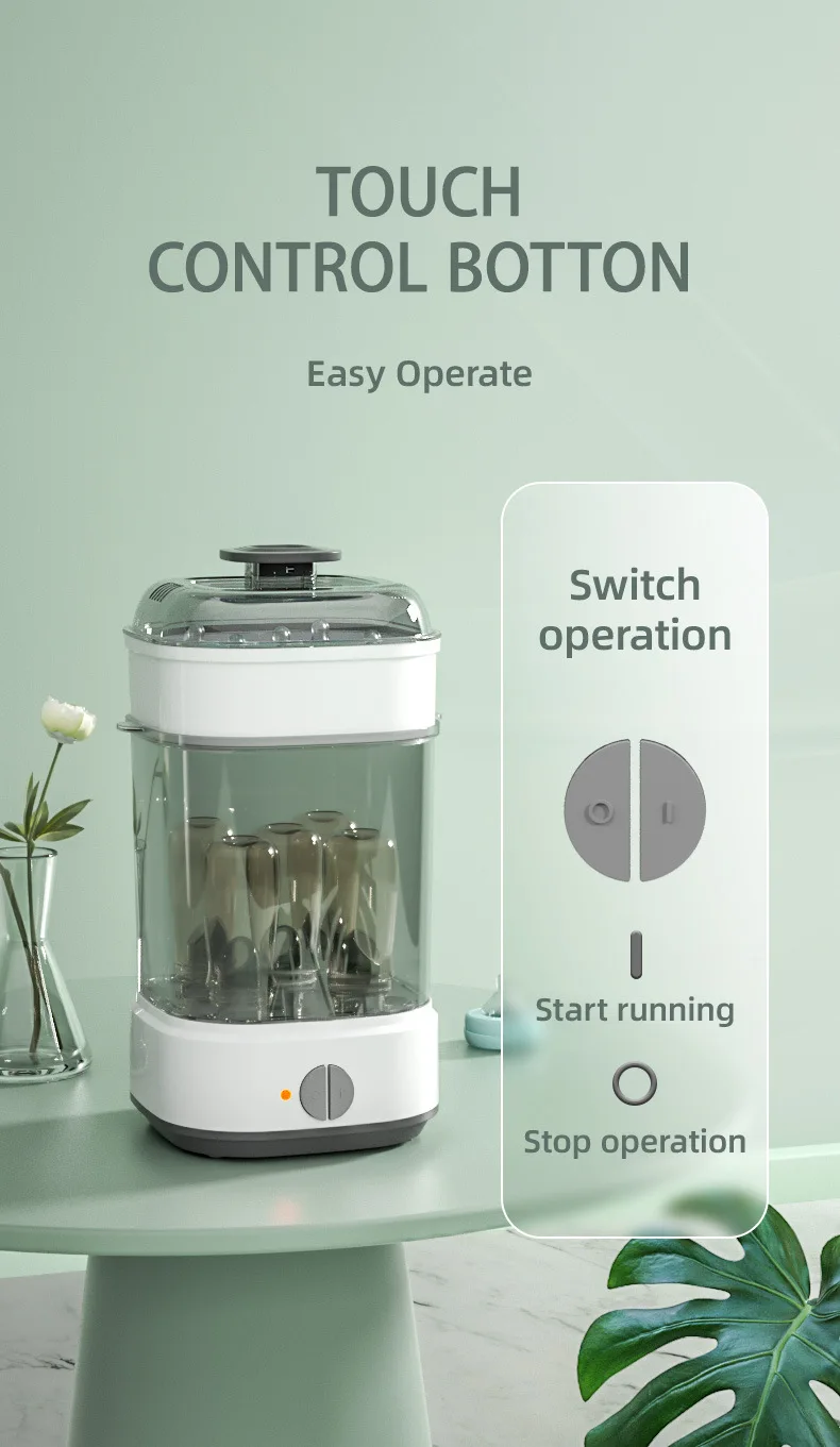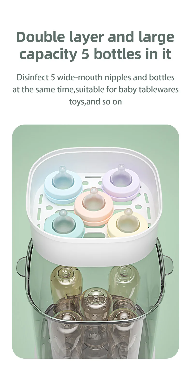 Esterilize mamadeiras e outros acessórios de forma rápida e eficaz em 8 minutos, a coluna de ar fornece 360° desinfecção completa, sem mais ferver as garrafas no fogão e sem necessidade de esperar os longos ciclos da máquina de lavar louça!Este é um item obrigatório para mães que trabalham ou ocupadas.(certifique-se de lavar suas garrafas antes de esterilizar)