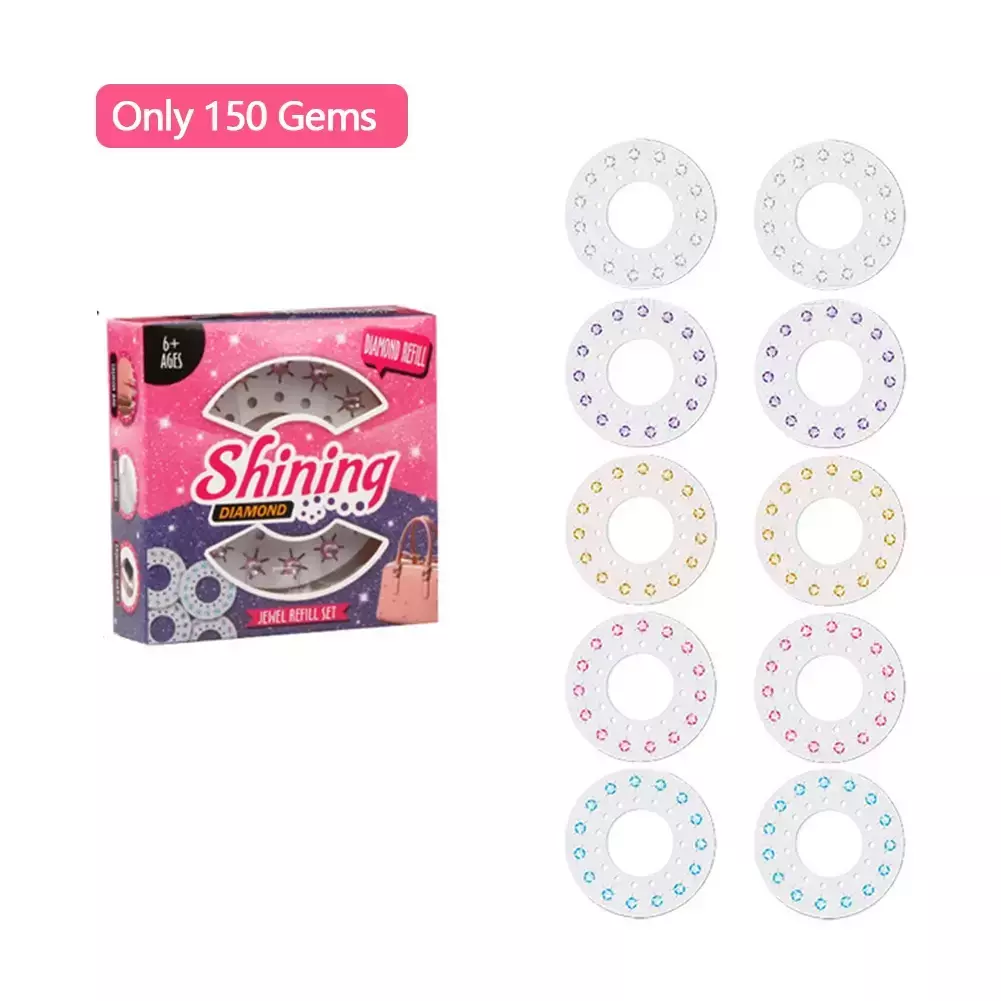 Para ainda mais brilho e diversão brilhante, existem conjuntos de recarga combinando com pedras brilhantes em diferentes variantes (vendidos separadamente).