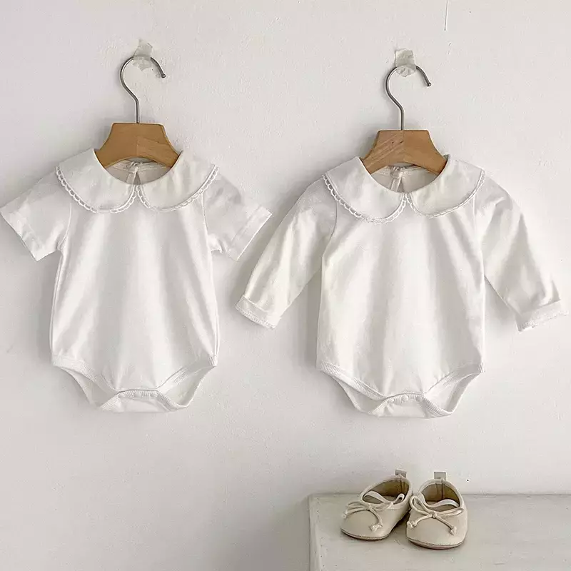 Novo bebê menina macacão roupas da menina da criança nova gola macacão primavera algodão branco infantil do bebê meninas macacão roupas infantis