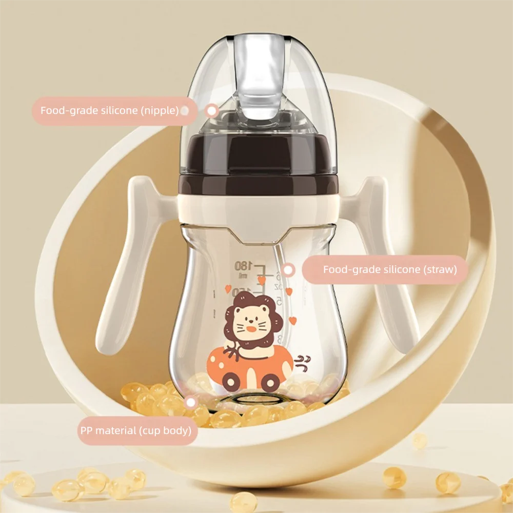 Capacidade: 180ml/240ml material PP de qualidade alimentar e chupeta de silicone líquido