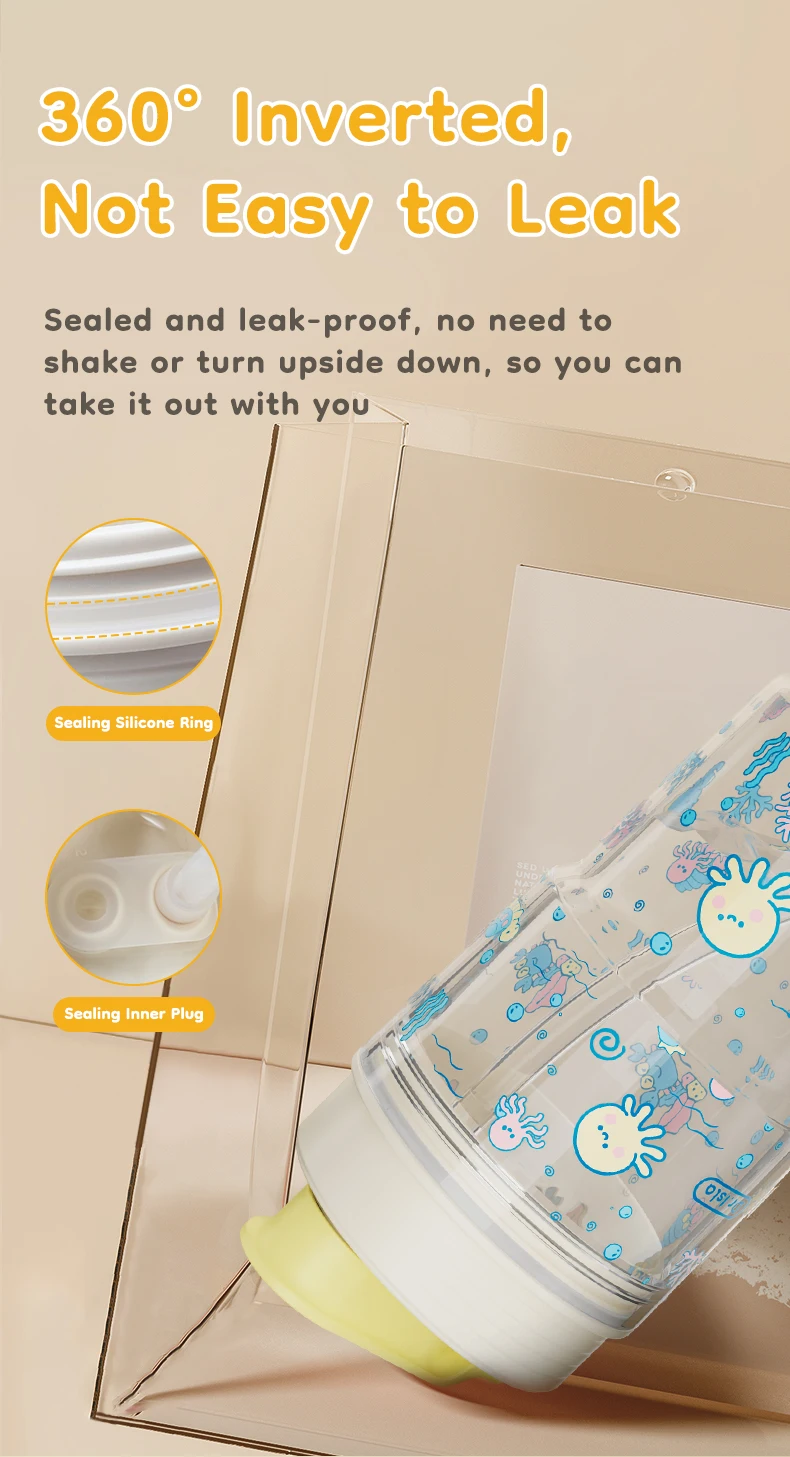 Diga adeus aos derramamentos acidentais!A tampa segura e selada mantém a entrada de poeira e líquidos, mesmo quando virada de cabeça para baixo. Seja jogado em uma bolsa de fraldas ou deixado cair com mãos minúsculas, este copo permanece livre de vazamentos - garantido.