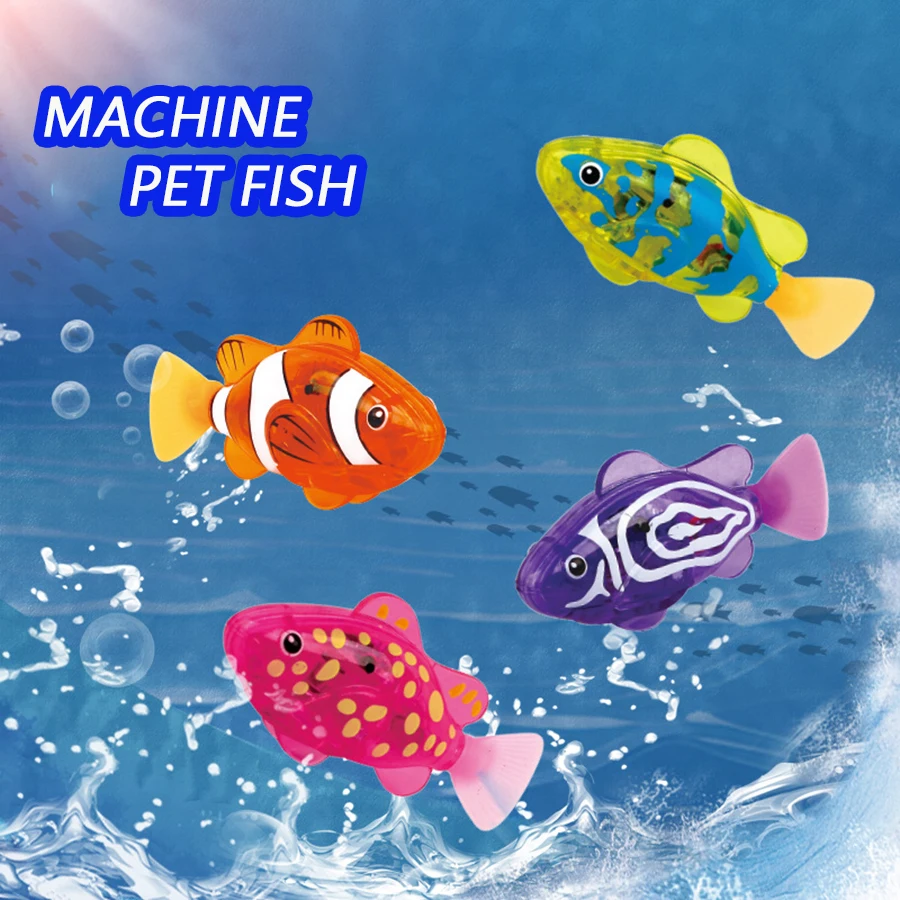 Brinquedo eletrônico de natação para peixes, robô interativo alimentado por bateria, animal de estimação, banho infantil, tanque de peixes, ação de decapagem, como peixes reais, cores aleatórias (1 unidade)