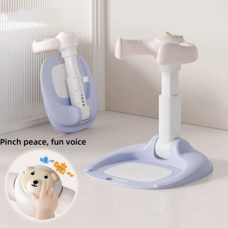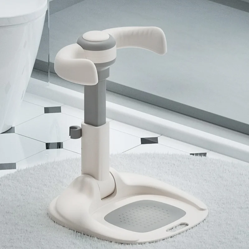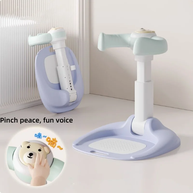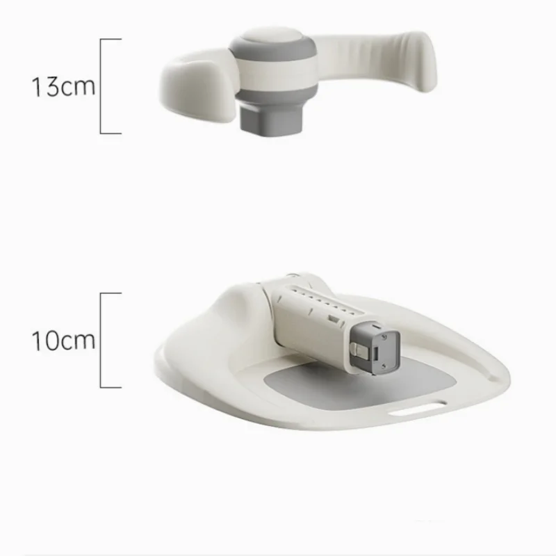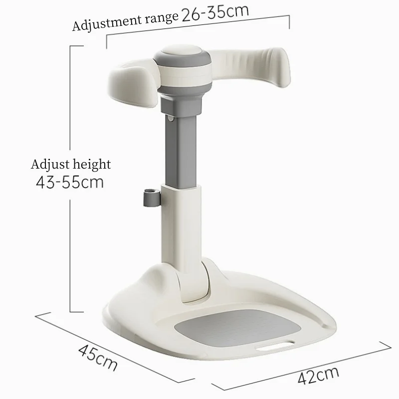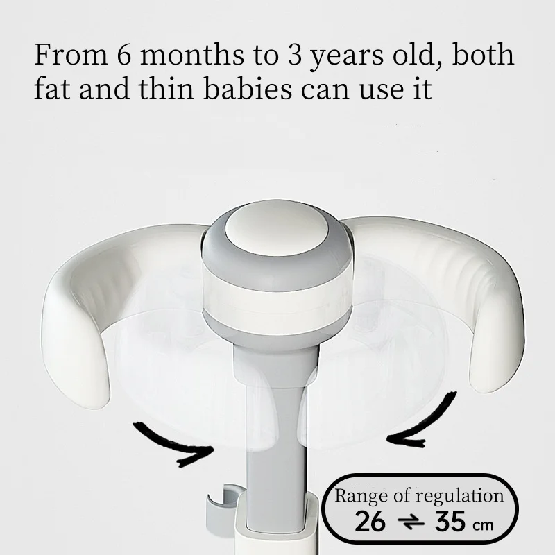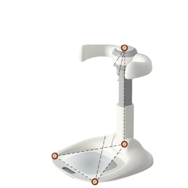 2-SISTEMA DE ALTURA AJUSTÁVEL; Com um sistema de elevação ajustável, nosso suporte de chá para bebê se ajustará ao crescimento do seu filho.O mecanismo de ajuste multinível visa diferentes idades e garante conforto ideal durante a hora do banho.A estrutura flexível permite mudanças de altura sem esforço e maior vida útil do produto.