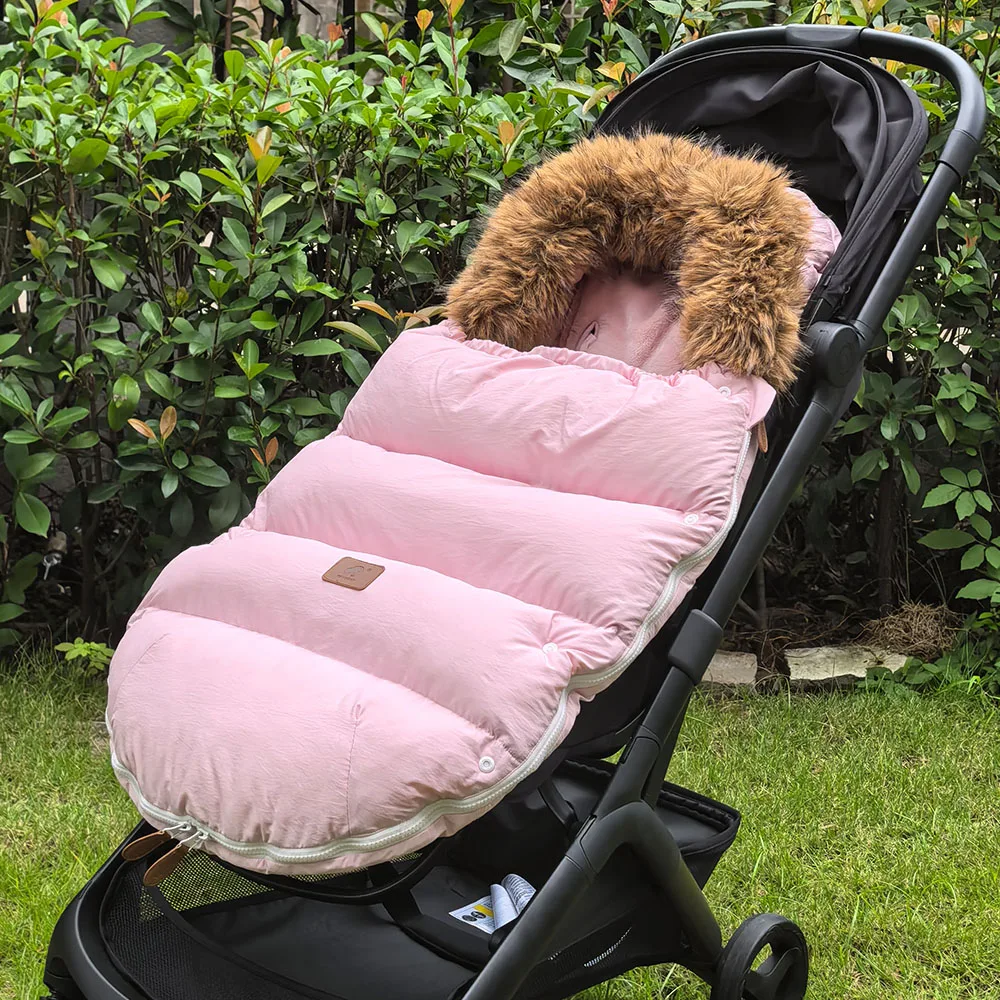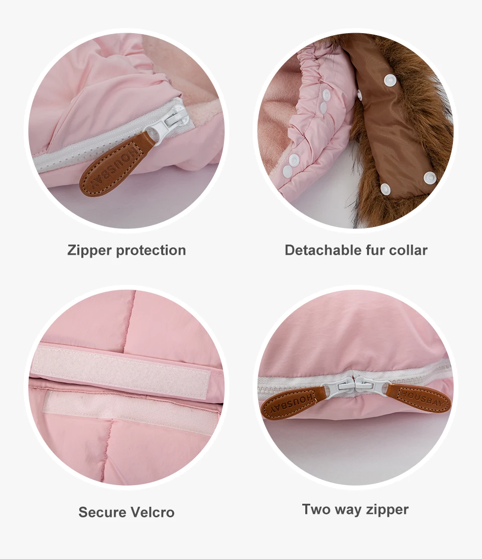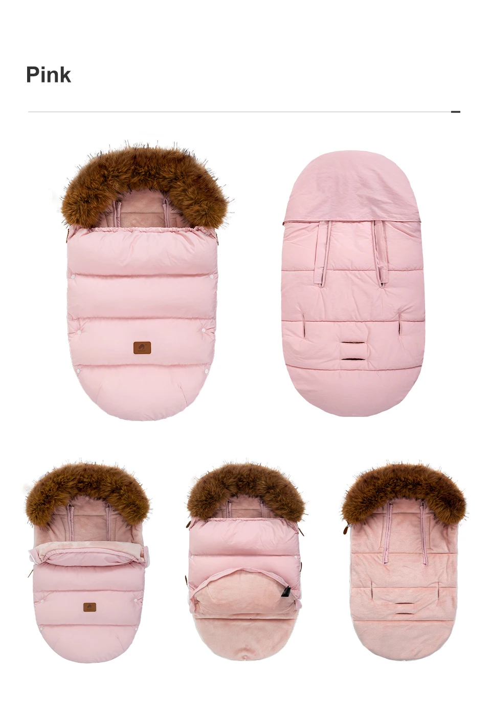 Ofereça um inverno quente para o bebê, Sacos de dormir para carrinho de bebê design amplo de espaço interno, o bebê pode mover as mãos e chutar as pernas livremente, sem se conectar ao bebê ativo; com uma gola macia removível para manter o bebê aquecido em dias de vento.