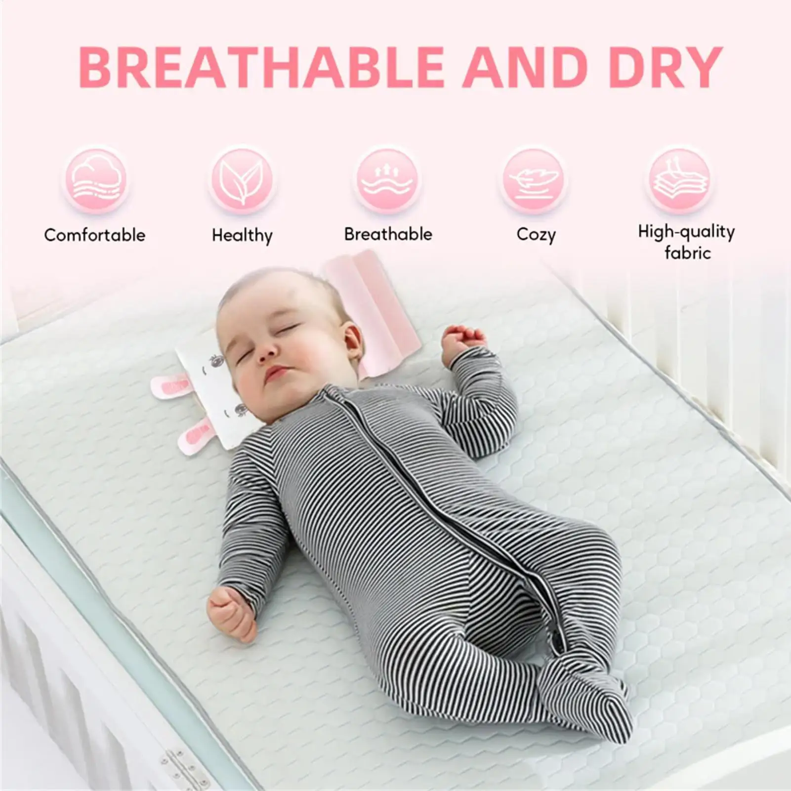 Respirável e de suporte, esta almofada de cabeça de bebê promove modelagem e desenvolvimento adequados do pescoço das crianças durante a amamentação e o sono.Adequado para berços, assentos de carro e viagens.