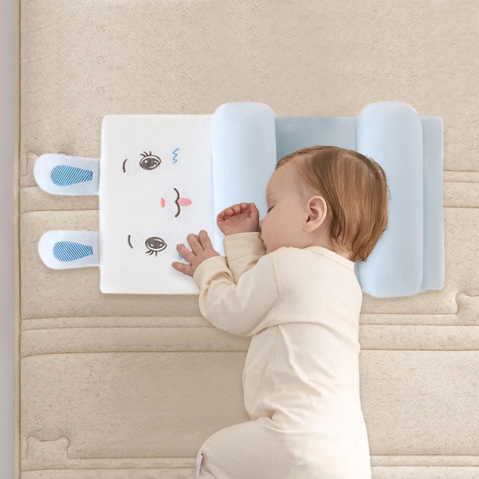 1. Inovação de design natural: Apresentando um design cuidadosamente considerado, este travesseiro melhora a qualidade do sono, equilibrando os pontos de pressão, o que promove o crescimento natural do osso e contribui para manter uma cabeça de bebê bem moldada